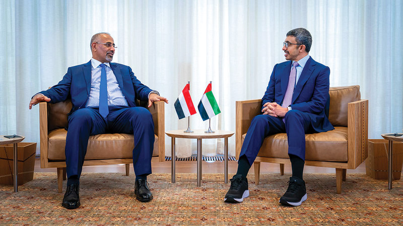 عبدالله بن زايد بحث مع عيدروس الزبيدي تطورات الأزمة اليمنية والجهود المبذولة للتوصل إلى تسوية سياسية. وام