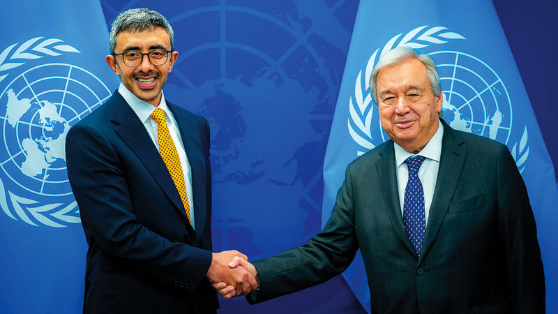 عبدالله بن زايد يبحث مع غوتيريش الشراكة بين الإمارات والأمم المتحدة والمستجدات الإقليمية والعالمية