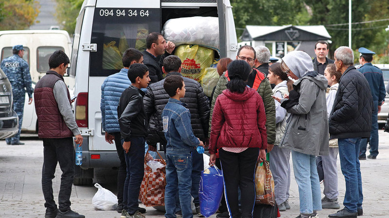 أعلنت الحكومة الأرمينية، أمس، أن ما لا يقل عن 6650 شخصاً من المنتمين إلى عرقية الأرمن، عبروا إلى البلاد من منطقة ناغورني قره باغ في أذربيجان، فيما قالت القيادة العرقية الأرمنية للمنطقة إن جميع الراغبين في المغادرة إلى أرمينيا بعد العملية العسكرية التي نفذتها أذربيجان الأسبوع الماضي ستتاح لهم الفرصة، موضحة أنها ستوفر الوقود مجاناً للراغبين في الرحيل بسياراتهم.