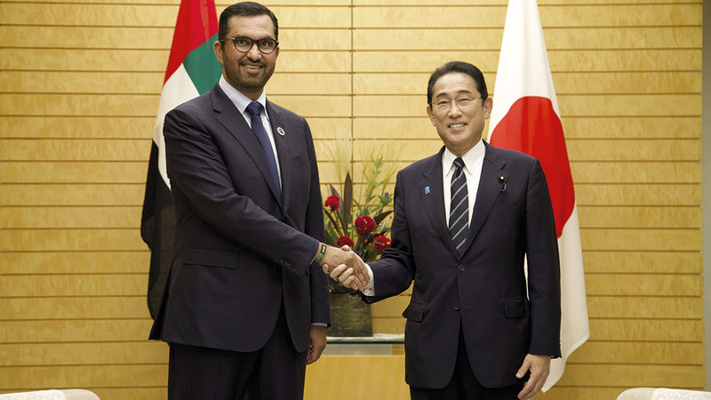 سلطان الجابر ناقش مع فوميو كيشيدا موضوعات عدة بينها استعدادات الإمارات لاستضافة «COP28». من المصدر