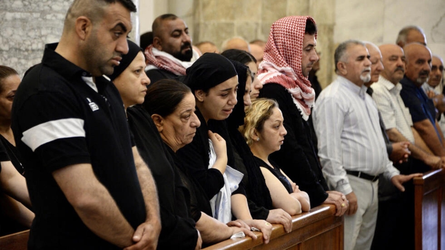 وفي كنيسة الطاهرة للسريان الكاثوليك في قرقوش صباح الخميس، جلست نساء متشحات بالسواد على المقاعد الخشبية وبدا الحزن والألم على وجوههن. على مقعد آخر عانقت امرأة رجلا جالسا إلى جانبها لم يتمكن من كبت دموعه.