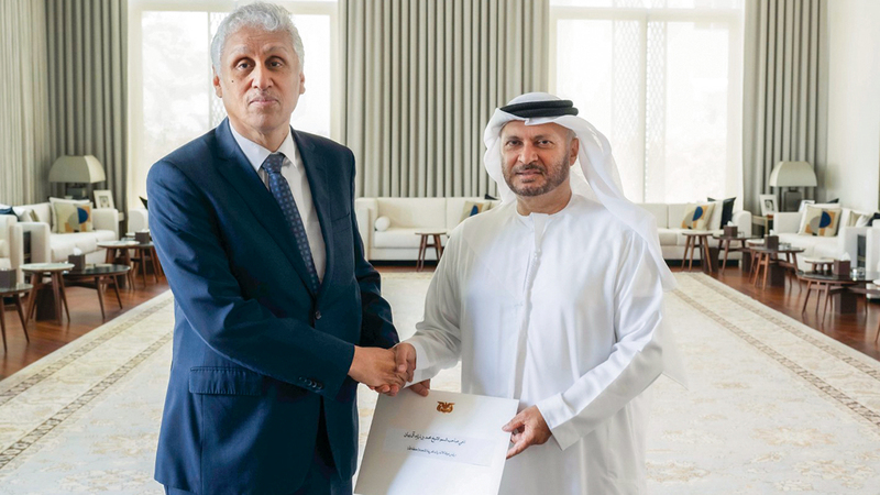 تسلم الرسالة المستشار الدبلوماسي لصاحب السموّ رئيس الدولة، الدكتور أنور قرقاش، خلال استقباله أمس سفير الجمهورية اليمنية لدى الدولة فهد سعيد المنهالي.