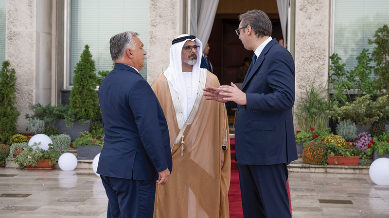 حضر سموّ الشيخ خالد بن محمد بن زايد آل نهيان، ولي عهد أبوظبي، أمس، اجتماعاً ثلاثياً في العاصمة بلغراد ضمَّ رئيس جمهورية صربيا ألكسندر فوتشيتش، ورئيس وزراء جمهورية المجر فيكتور أوربان.