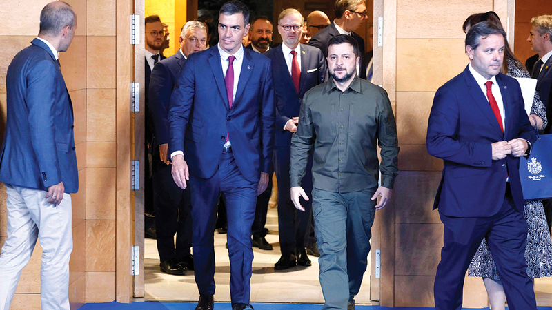 وسيلتقي زيلينسكي رئيس الوزراء الإسباني بيدرو سانشيز، قبل أن ينضم إليهما نحو 50 من قادة أوروبا الآخرين لإجراء محادثات تركز على الأمن. وقال سانشيز، قبيل الاجتماع، «كل الأوروبيين يدعمون فولوديمير زيلينسكي وبلاده».