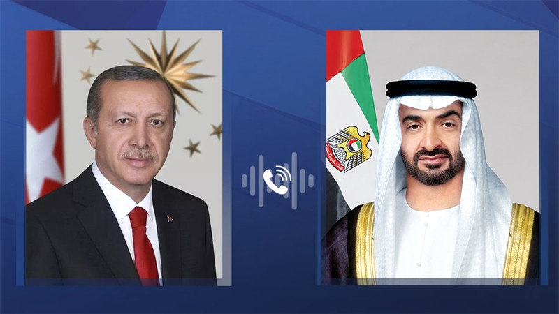 بحث صاحب السمو الشيخ محمد بن زايد آل نهيان رئيس الدولة، ورئيس الجمهورية التركية رجب طيب أردوغان، خلال اتصال هاتفي، أمس، جهود احتواء التصعيد في المنطقة، والأولوية القصوى لحماية المدنيين والحفاظ على أرواحهم، إلى جانب تكثيف المساعي لفتح ممرات آمنة تضمن وصول المساعدات الإنسانية، في ضوء تزايد وتيرة التصعيد والعنف الذي يهدّد الأمن والاستقرار الإقليميين.