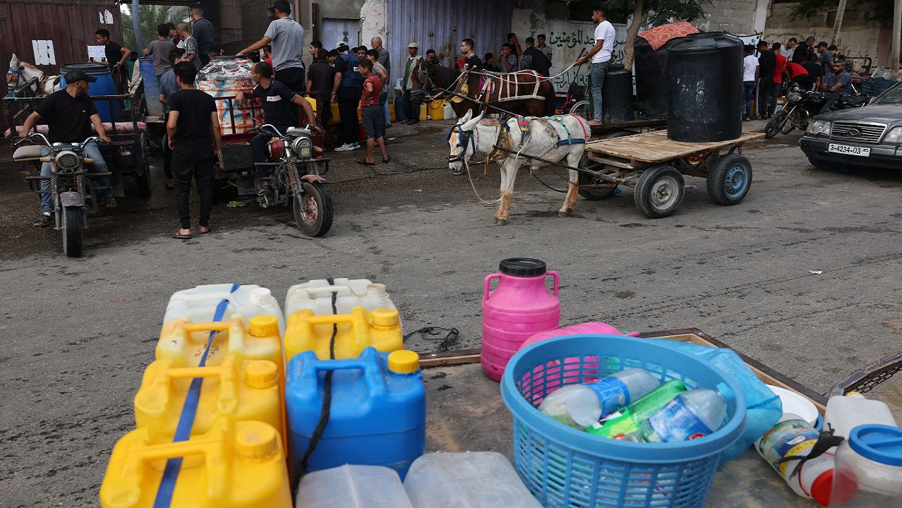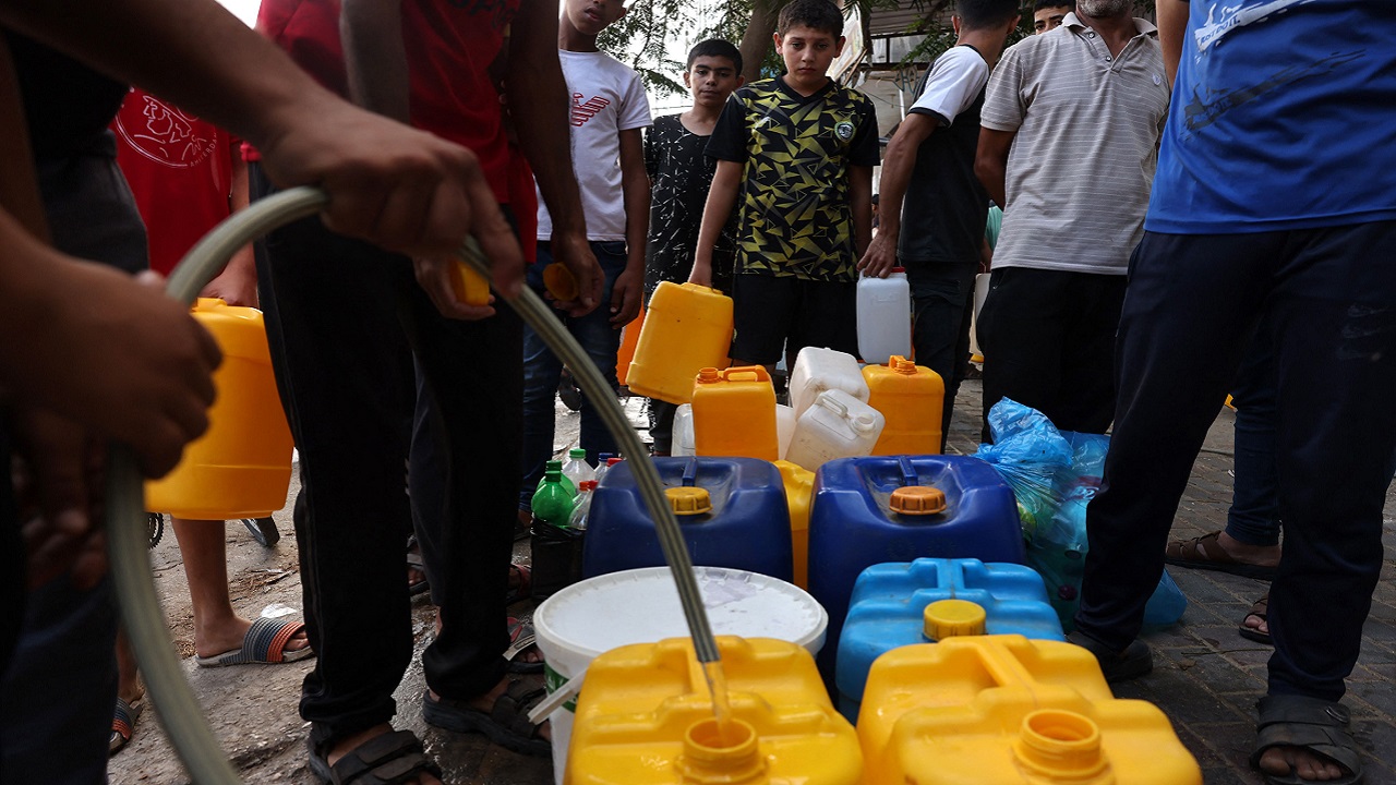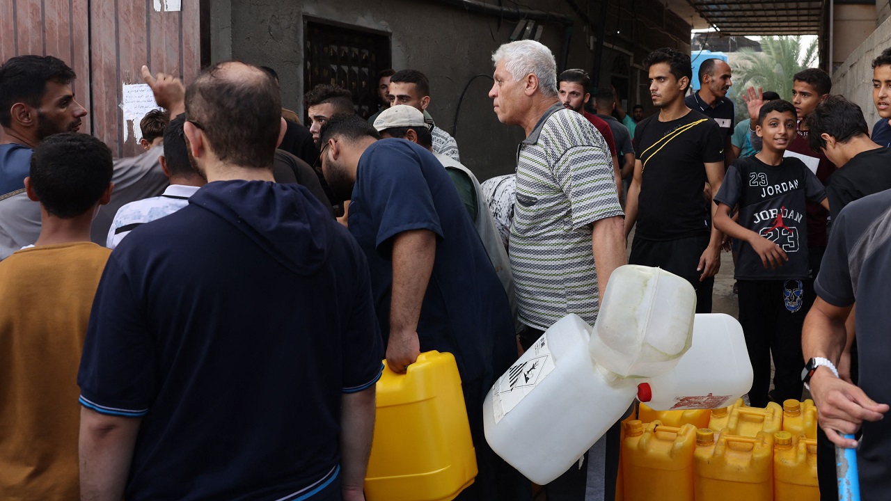 وأظهرت صور أخرى نازحون فلسطينيون يصطفون للحصول على المياه الشحيحة من خرطوم صغير، وسط تحذيرات أممية من انعدام الأمن الغذائي وفرص الحصول على المياه والمأوى والرعاية الصحية لعشرات الآلاف من النازحين جراء هجمات إسرائيل على القطاع.