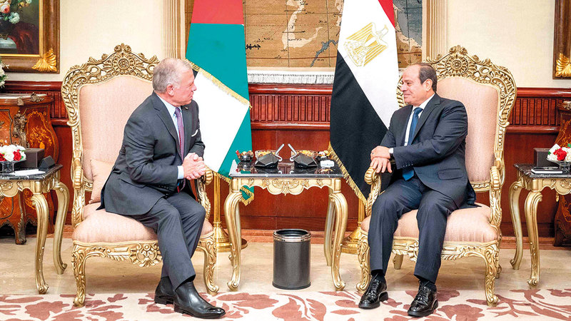 السيسي وعبدالله الثاني حذّرا خلال اجتماعهما من كارثة إقليمية في حال اتساع نطاق الحرب. أ.ف.ب
