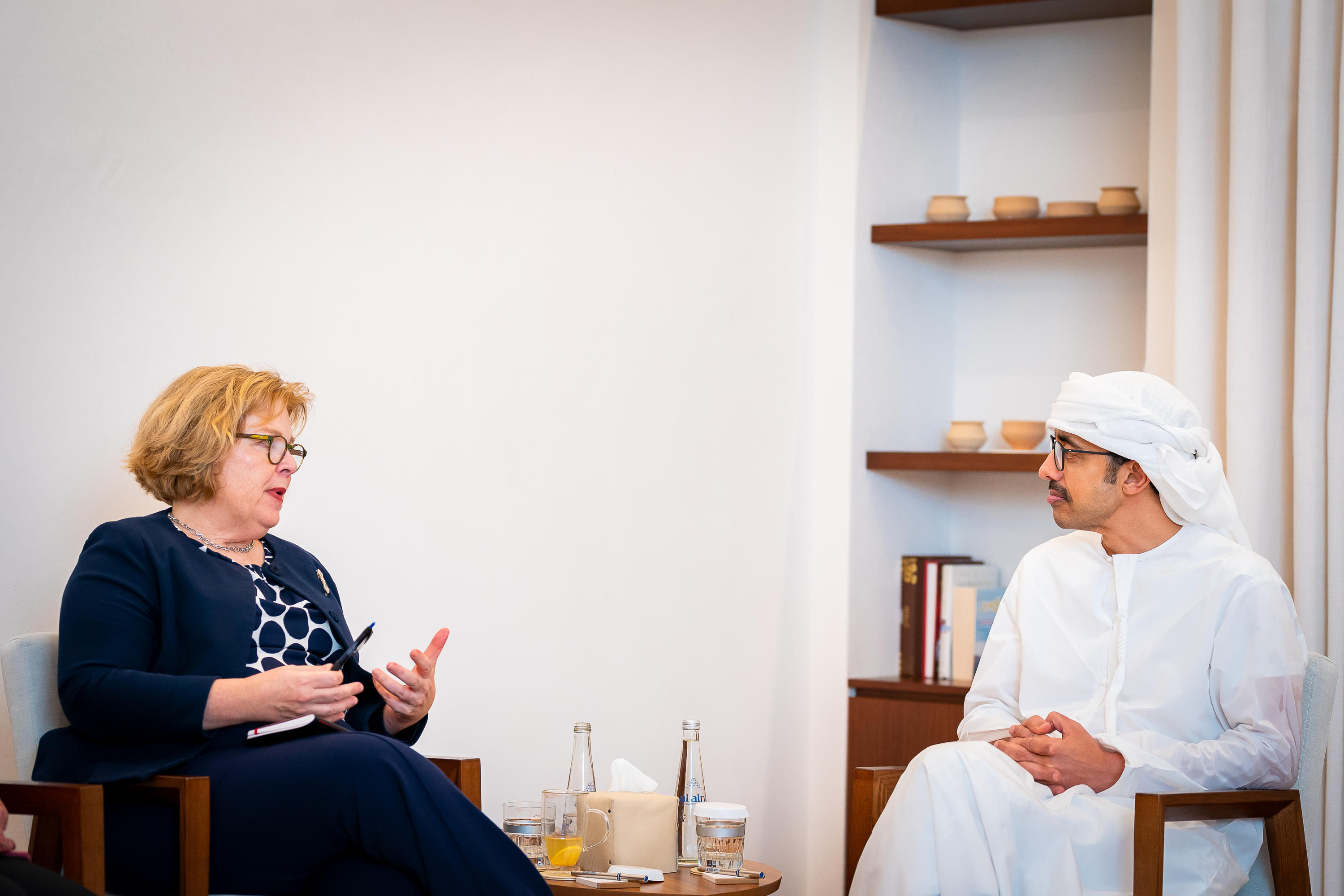 وبحث سموه و باربرا ليف ، خلال اللقاء الذي عقد في أبوظبي ، الأوضاع الراهنة في منطقة الشرق الأوسط ، وجهود المجتمع المدني لحماية كافة المدنيين من تداعيات الأزمة، كما ناقشا السبل الكفيلة بتوفير المساعدات الإغاثية والطبية للمدنيين على نحو مستدام.