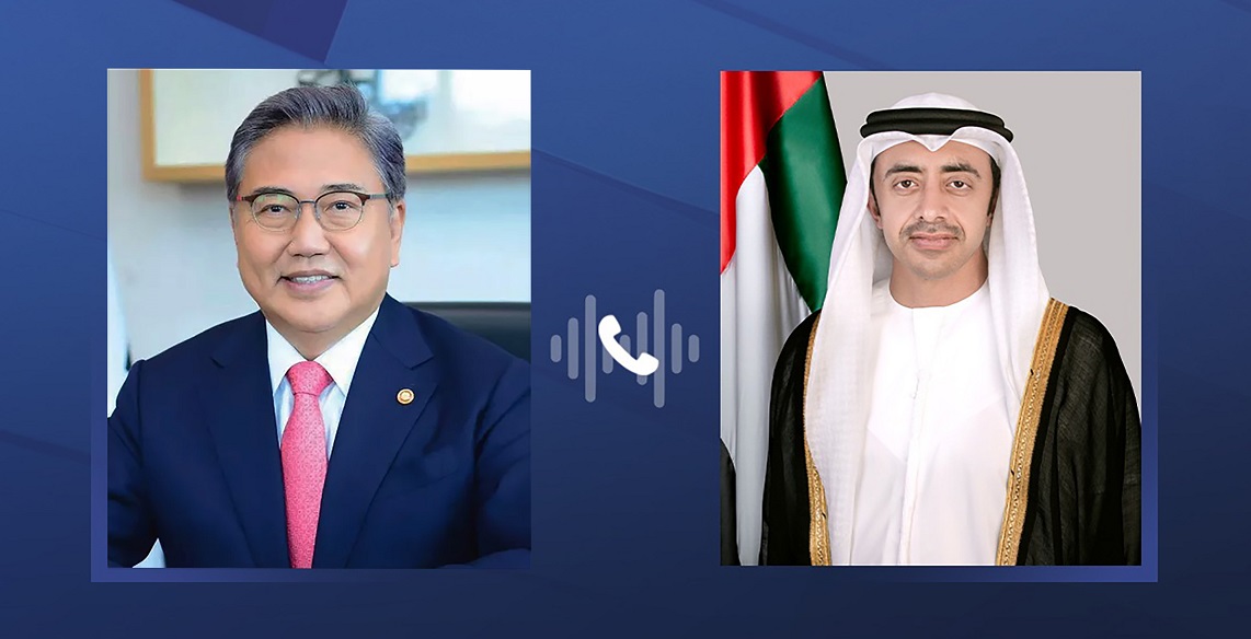 بحث سمو الشيخ عبدالله بن زايد آل نهيان وزير الخارجية، خلال اتصال هاتفي، مع وزير خارجية جمهورية كوريا بارك جين، تطورات الأوضاع في منطقة الشرق الأوسط وجهود حماية كافة المدنيين.