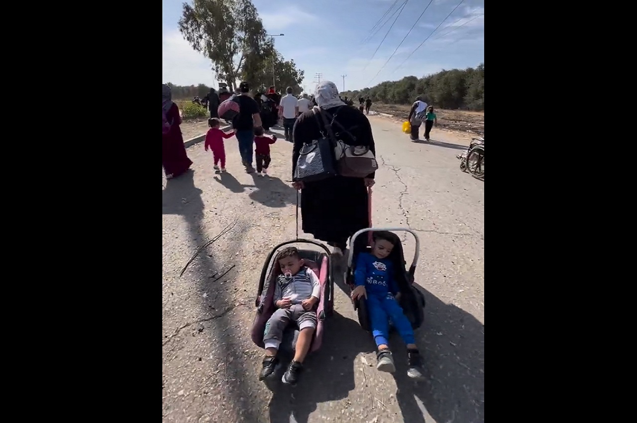 احتفت حسابات على مواقع التواصل الاجتماعي بأم في غزة شوهدت وهي تجر عربتين بداخلهما طفليها على ما يبدو، وقالوا إنها ظلت تجرهما لمسافة طويلة أثناء عملية النزوح في قطاع غزة.