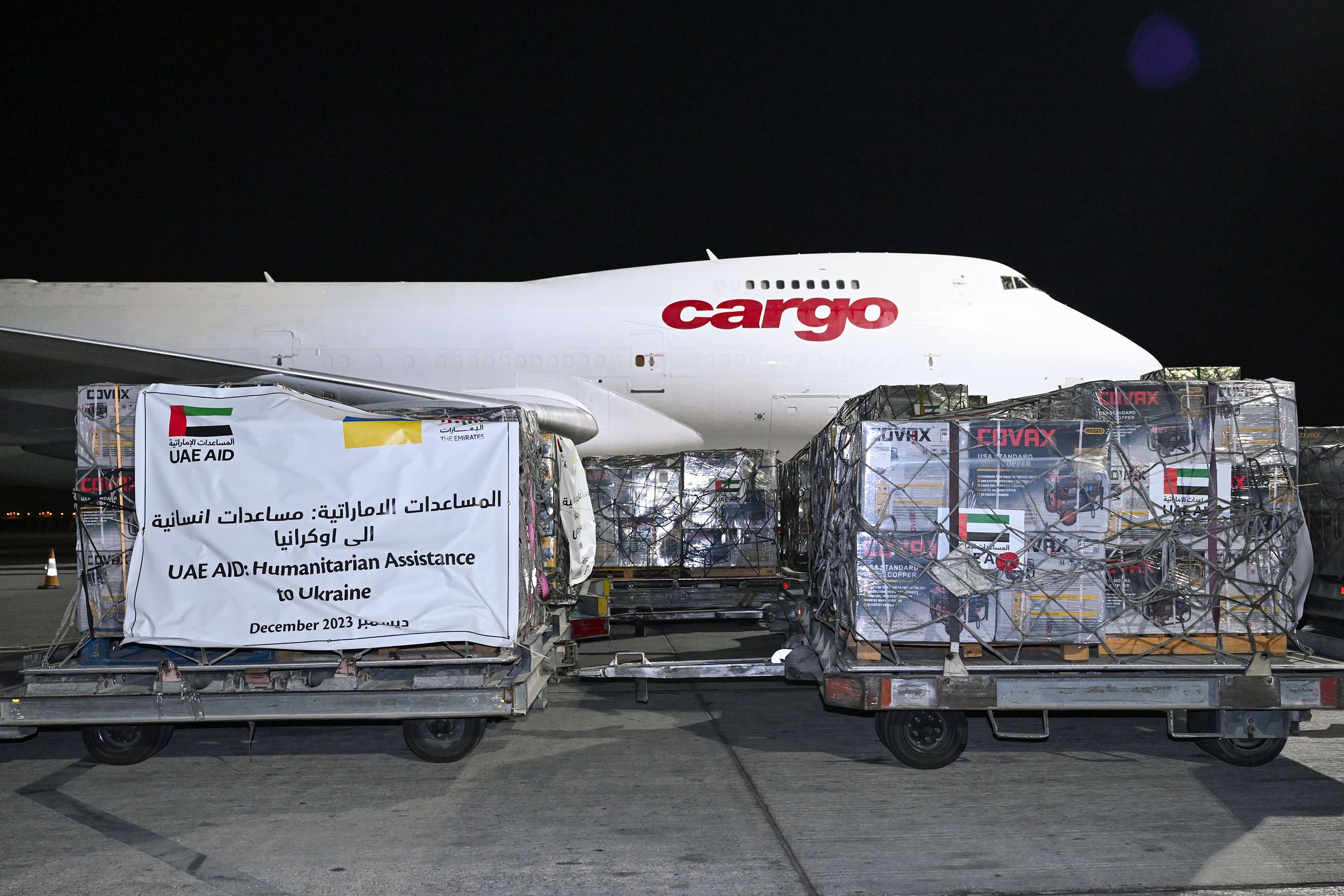 الإمارات ترسل طائرة تحمل 1640 مولد طاقة منزلية مساعدة للمدنيين الأوكرانيين