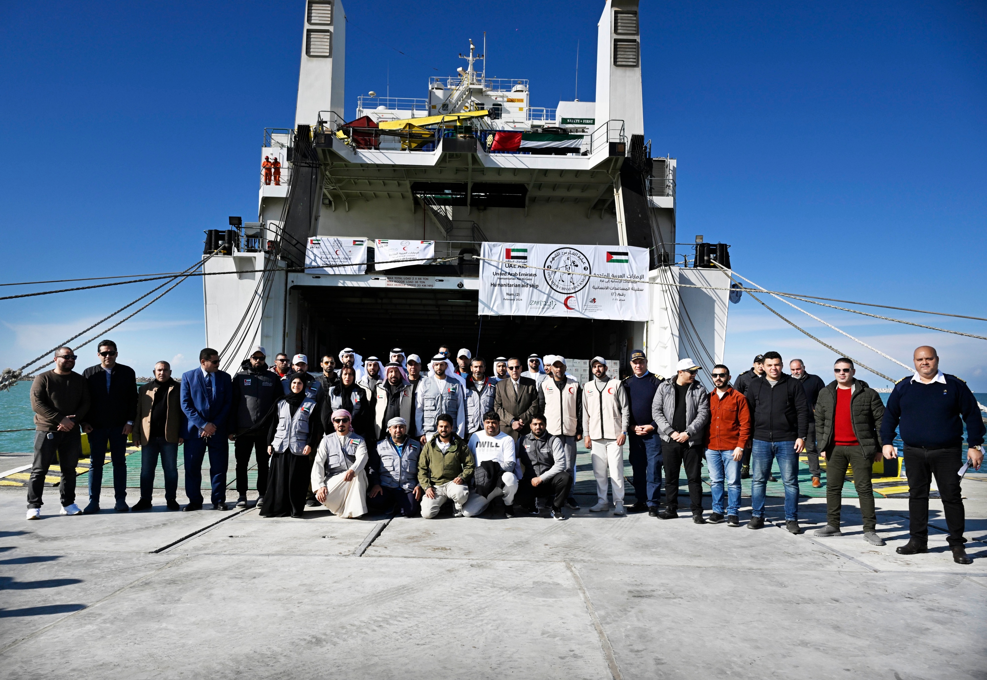 وصول سفينة المساعدات الإماراتية الـ 2 لميناء العريش وعلى متنها 4,544 طنا من المواد الإنسانية تمهيدا لإدخالها إلى قطاع غزة