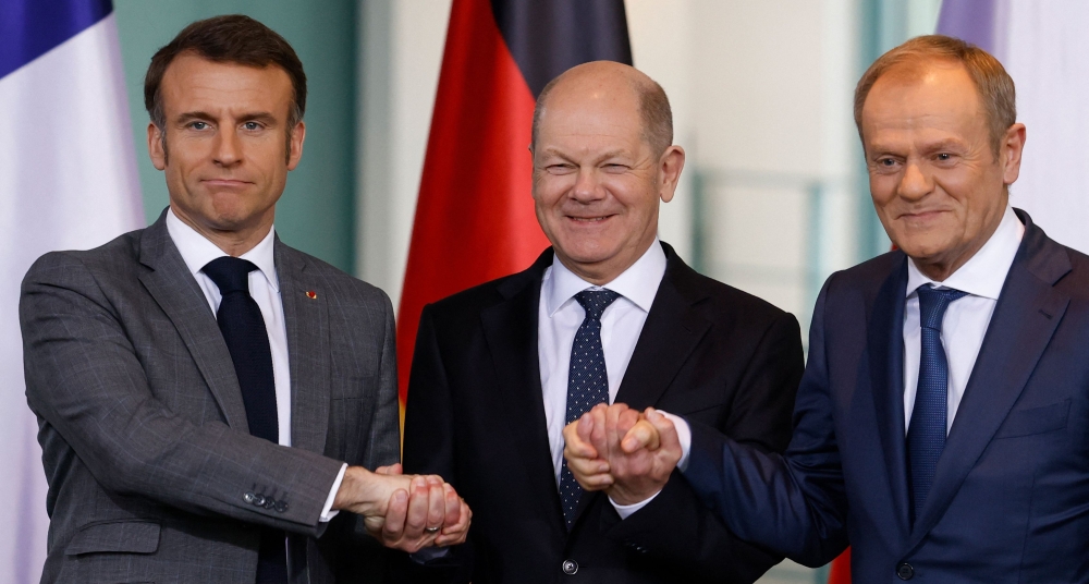 وفي أعقاب مشاوراته مع الرئيس الفرنسي إيمانويل ماكرون ورئيس الحكومة البولندية دونالد توسك، قال شولتس في برلين اليوم الجمعة: "سنقوم اعتبارا من الآن بشراء المزيد من الأسلحة لصالح أوكرانيا - وذلك على مستوى السوق العالمي بأكمله."، وأردف: "هذا تحسن جيد."