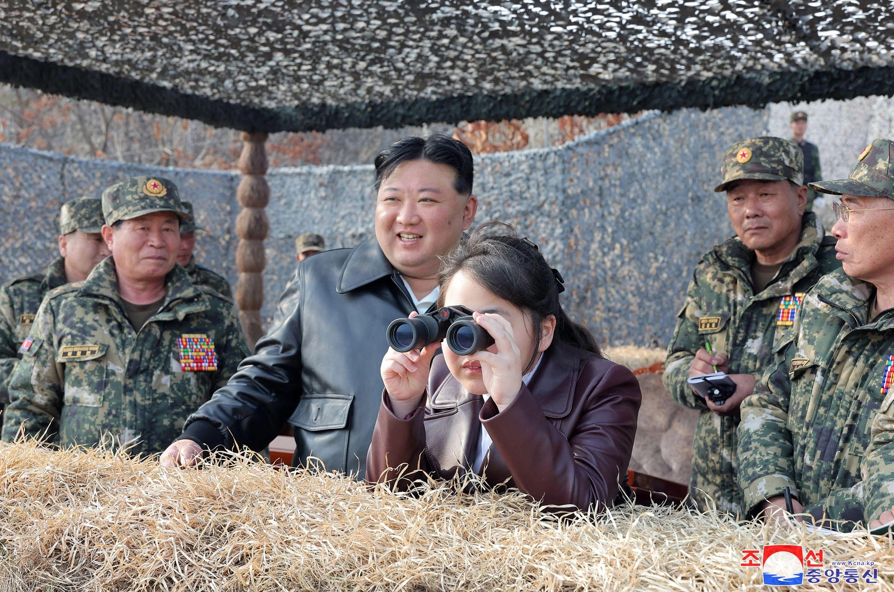 قاد الزعيم الكوري الشمالي كيم جونغ أون مع ابنته تدريبات القوات المحمولة جوا التابعة للجيش الكوري الشمالي.