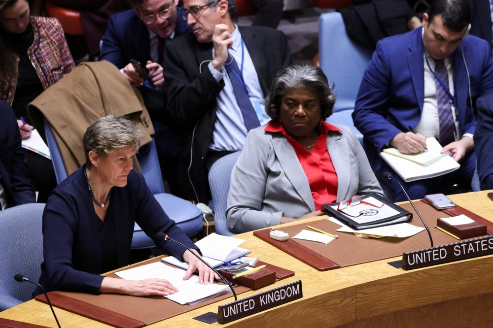 اعتبرت السفيرة الاميركية لدى الامم المتحدة الاثنين ان وقفا لاطلاق النار في غزة يمكن ان يبدأ فقط "مع الافراج عن اول رهينة"، وذلك بعد تبني مجلس الامن اول قرار له يطالب فيه بوقف فوري لاطلاق النار.