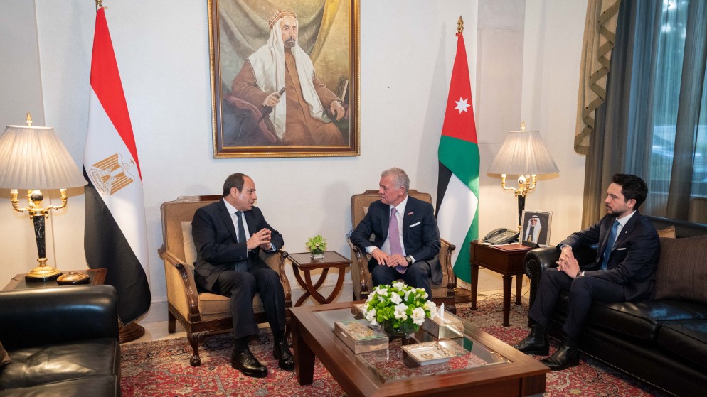جاء ذلك خلال لقاء الرئيس المصري عبدالفتاح السيسي، اليوم الاثنين، بالعاصمة الأردنية عمان، مع الملك عبدالله الثاني عاهل الأردن.