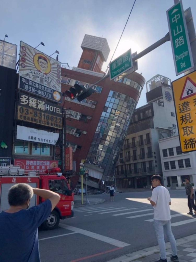 وعرض التلفزيون المحلي صورا مؤثرة لمبان متعددة الطوابق مائلة في مدينة هوالين وأماكن أخرى بعد انتهاء الزلزال، فيما انهار مستودع في مدينة نيو تايبيه.