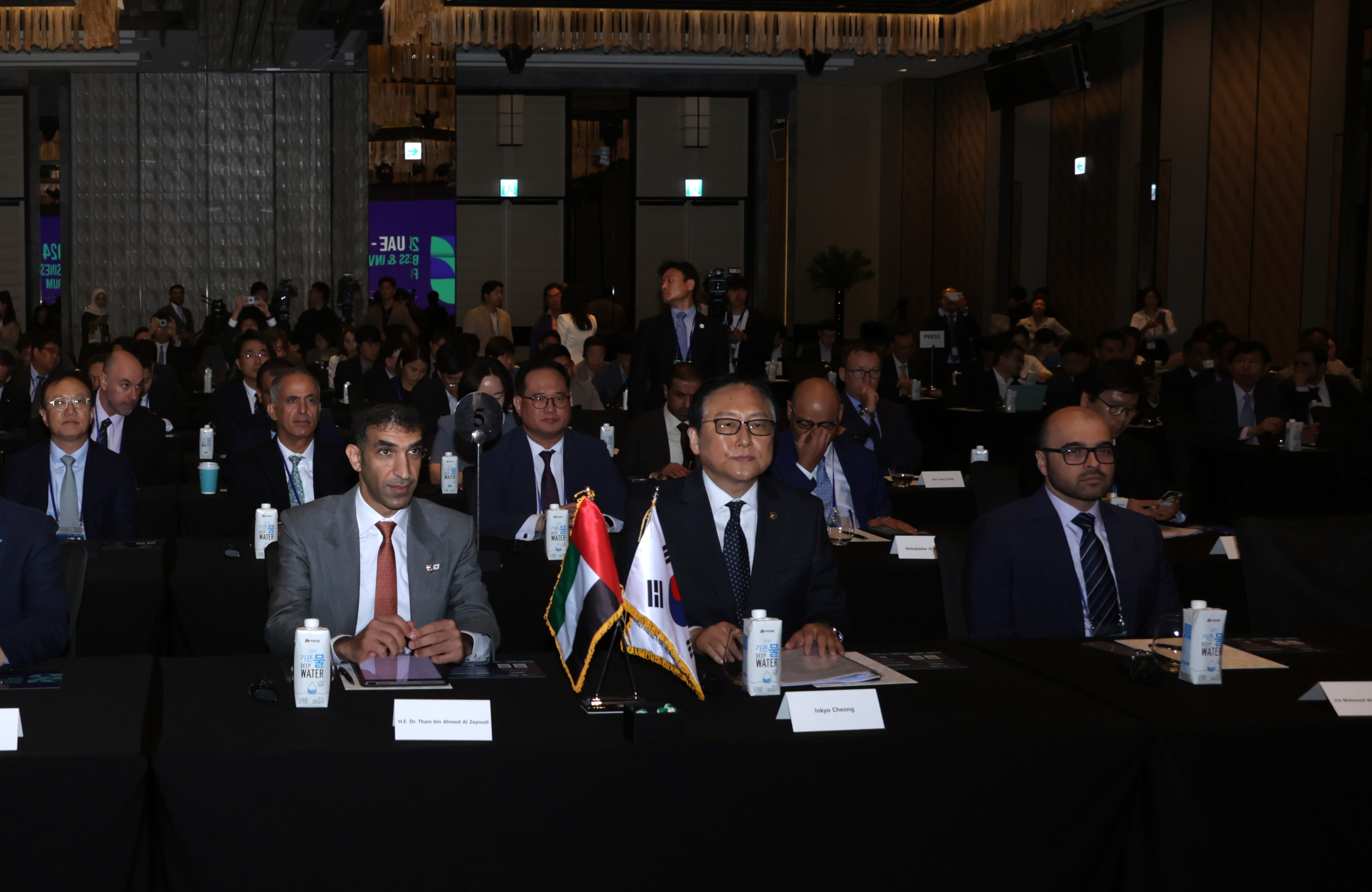 وأجرى معالي الدكتور ثاني الزيودي خلال المنتدى محادثات مع معالي إنكيو تشيونغ وزير التجارة الكوري الجنوبي، بحضور سعادة عبدالله محمد المزروعي رئيس اتحاد غرف التجارة والصناعة في الدولة، وسعادة جمعة الكيت وكيل الوزارة المساعد لشؤون التجارة الدولية وناقشا سبل التوسع في التجارة غير النفطية البالغة 5.3 مليار دولار في عام 2023.