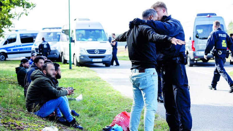 ضابط ألماني يفتش مهاجراً تسلل عبر الحدود. أرشيفية