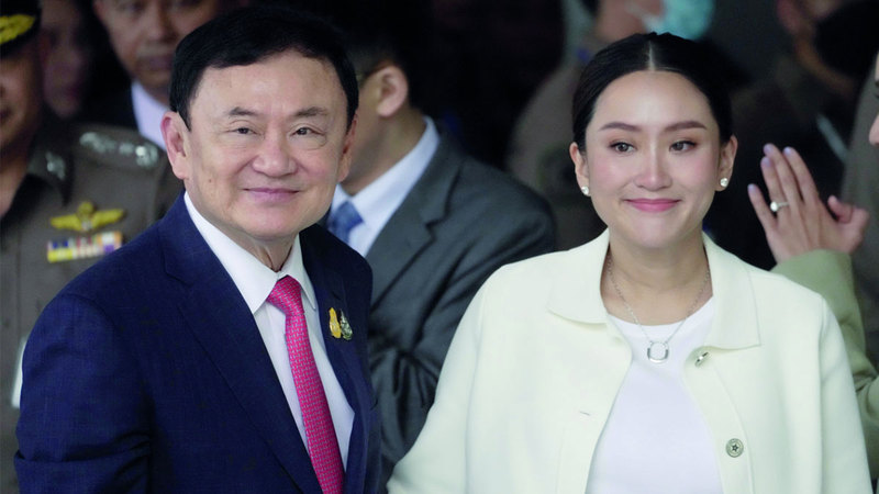 بايتونغتارن أصغر رئيسة حكومة في تاريخ تايلاند ووالدها الملياردير تاكسين شيناواترا رئيس وزراء سابق. أ.ب