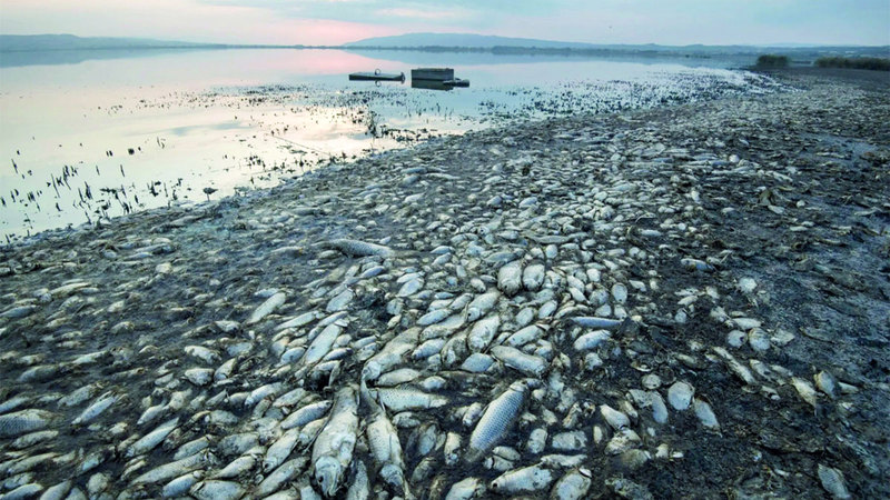 جفاف البحيرات في اليونان أدى إلى انتشار الأسماك النافقة والروائح الكريهة. أرشيفية