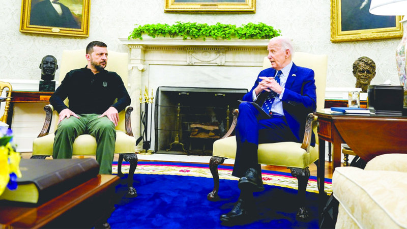 زيارة زيلينسكي للبيت الأبيض سعت للحصول على ضمانات أمنية بشأن حلف شمال الأطلسي. أ.ف.ب