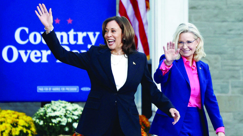 كامالا هاريس برفقة ليز تشيني خلال الحملة الانتخابية. رويترز