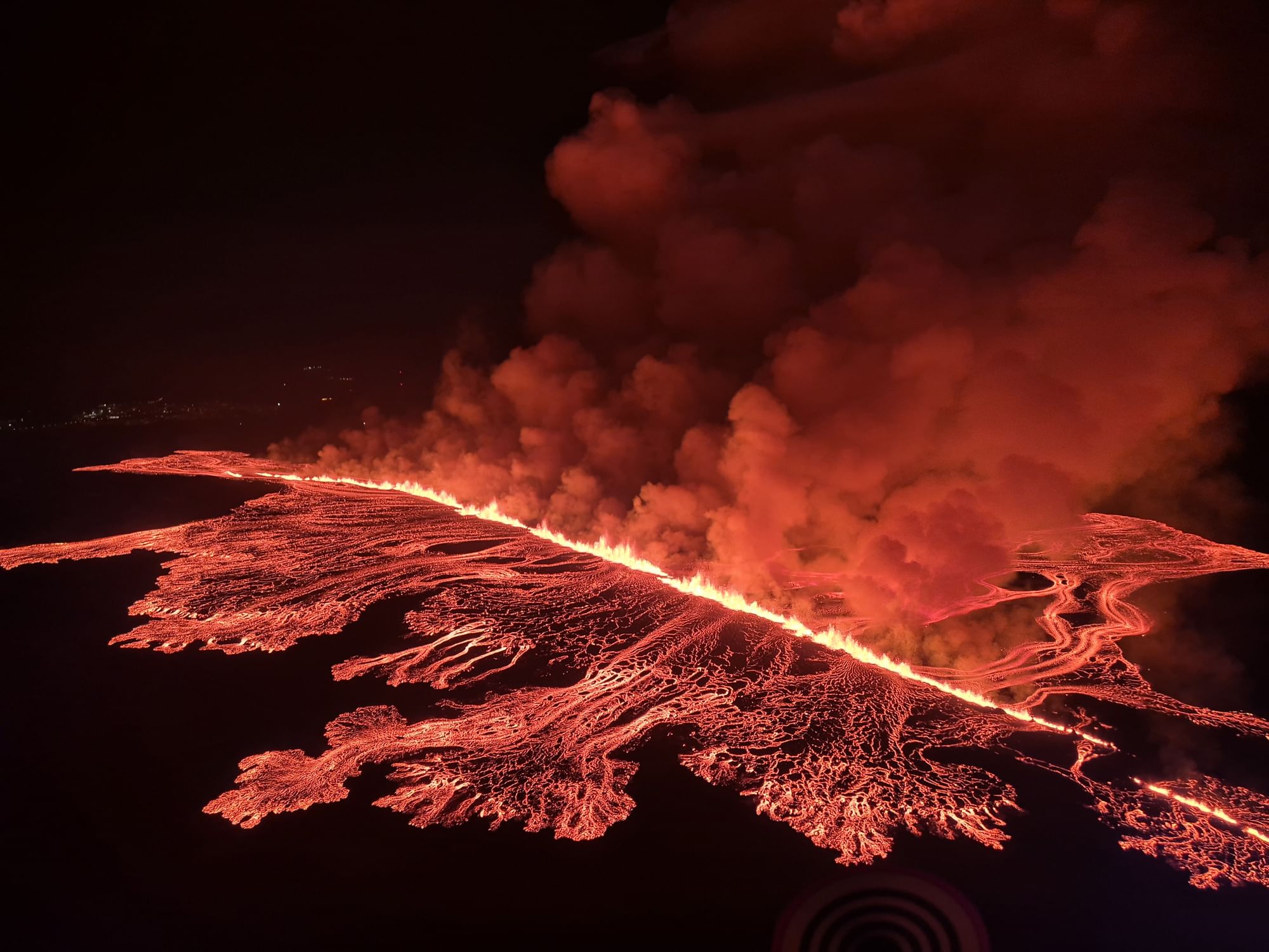 وأظهرت مشاهد تلفزيونية حية الحمم البركانية وهي تتدفق على طول شقّ أفقي.