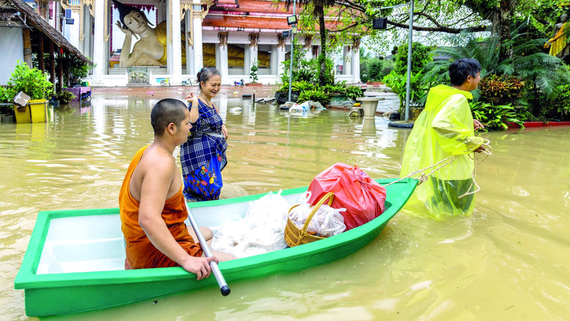 وبينما تشهد تايلاند أمطاراً موسمية سنوية، يفيد العلماء بأن تغير المناخ يؤدي إلى أحوال جوية أكثر حدة، ما يمكن أن يزيد احتمالات وقوع فيضانات مدمّرة. وضرب الإعصار «ياغي» شمال فيتنام ولاوس وتايلاند وبورما (ميانمار)، ما تسبب بفيضانات وانهيارات أرضية أسفرت عن مصرع المئات وعن عشرات المفقودين.