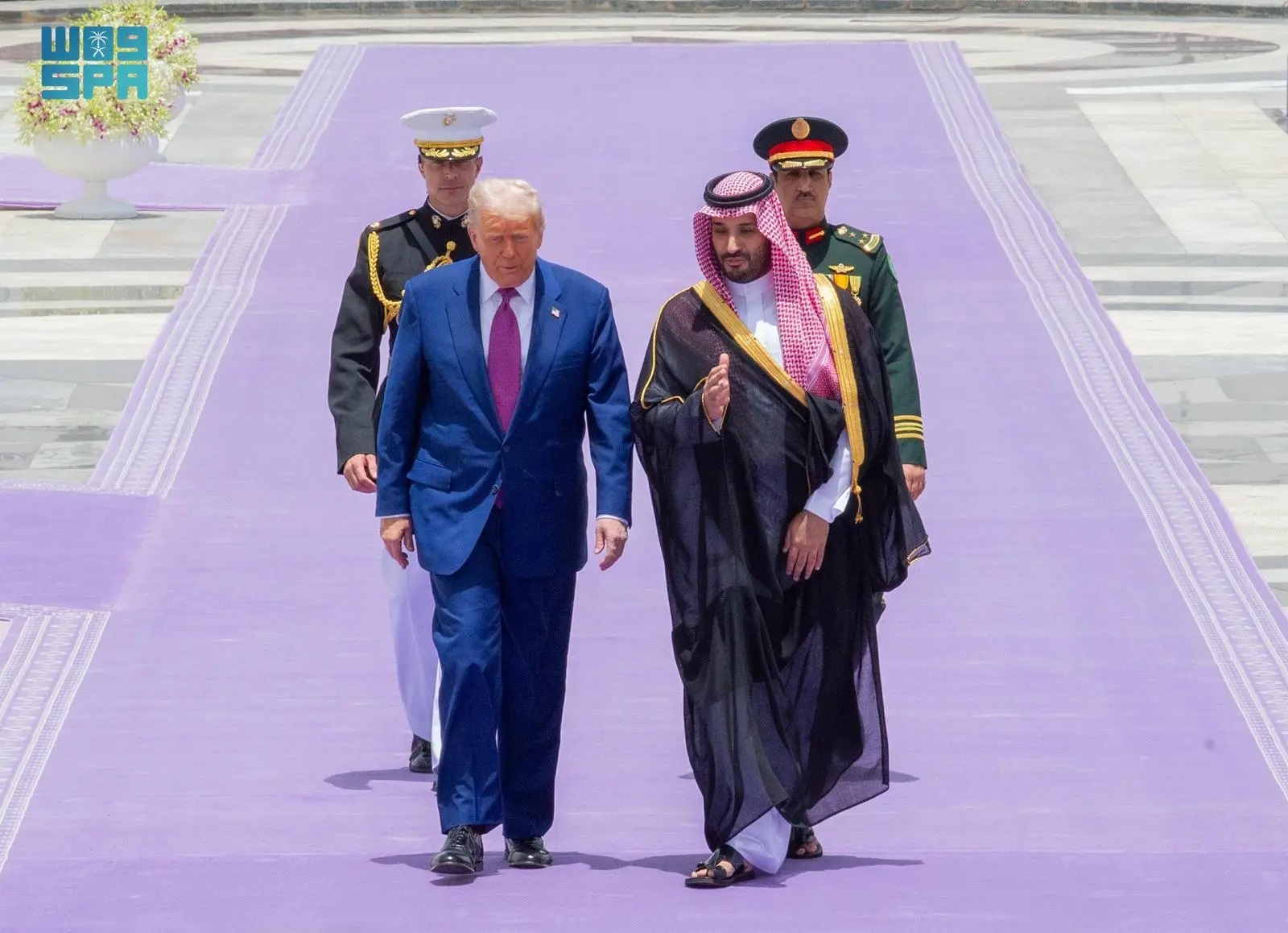 كما ظهرت خلال مراسم استقبال ترامب السجادة الأرجوانية التي تعد رمز حفاوة سعودية في استقبال كبار ضيوف المملكة.