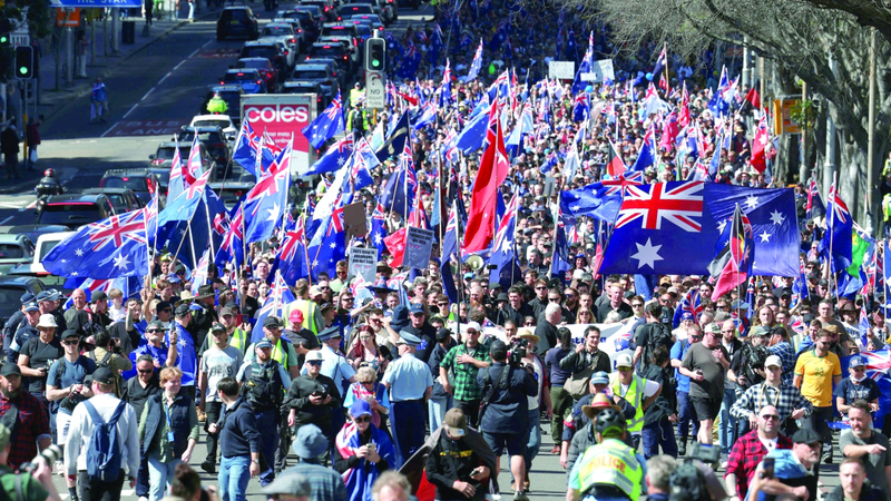 ووفقاً للقطات من الجو بثتها هيئة الإذاعة الأسترالية، خرج حشد كبير في مظاهرات «مسيرة من أجل أستراليا» بوسط ملبورن عاصمة ولاية فيكتوريا.
