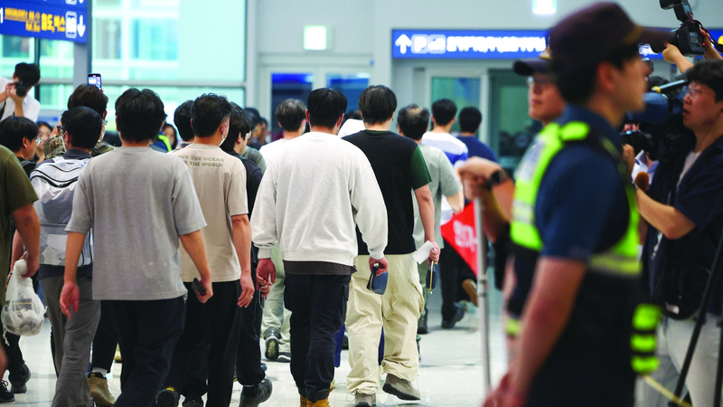 وصل مئات العمال الكوريين الجنوبيين الذين أوقفتهم سلطات الهجرة الأميركية في عملية دهم الأسبوع الماضي إلى بلادهم في طائرة مستأجرة حطت في مطار إنشيون الدولي أمس.