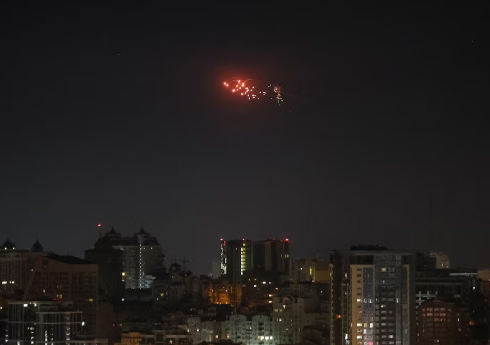 صورة أرشيفية لانفجار طائرة روسية مسيرة في سماء مدينة كييف. المصدر: رويترز