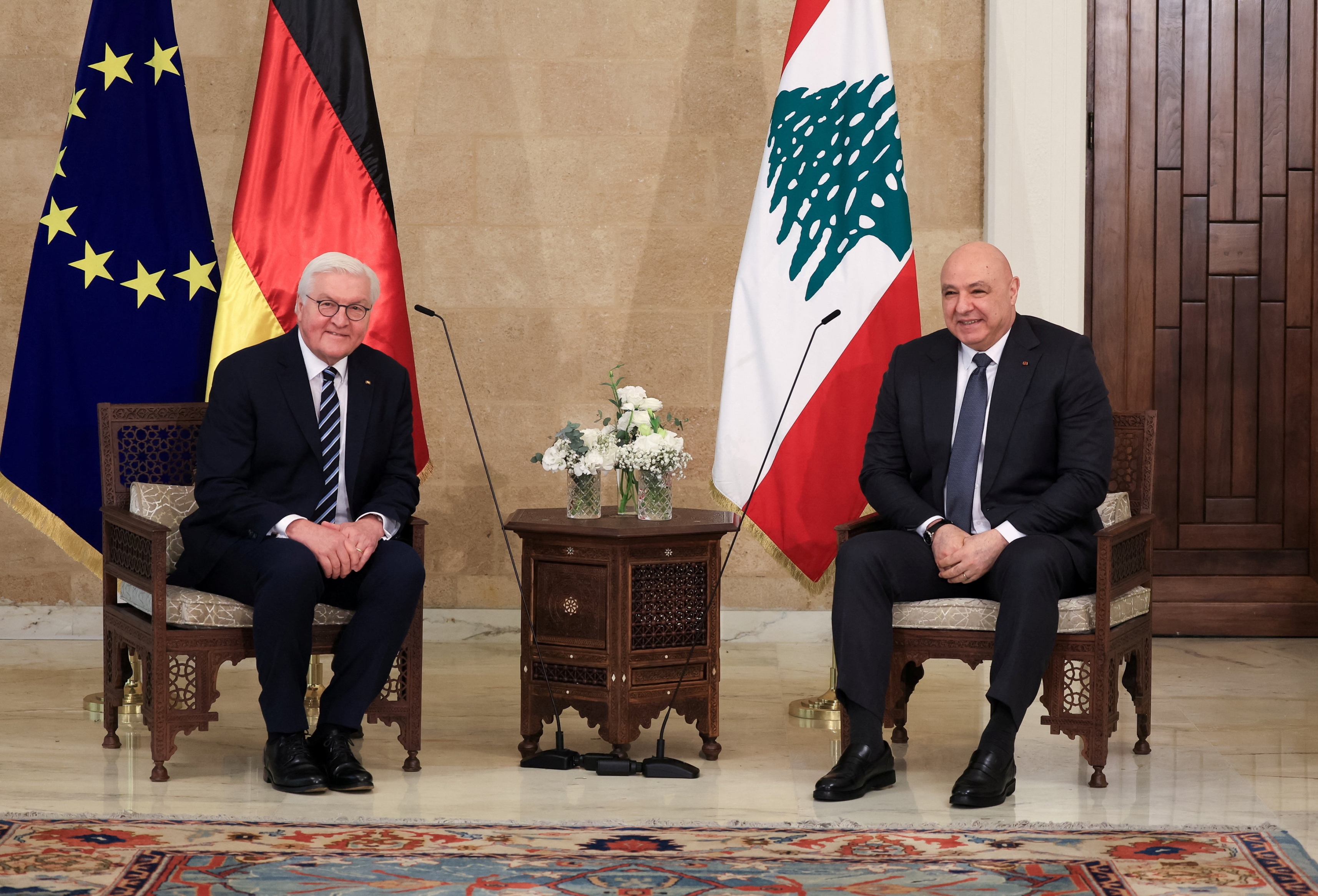 وبدأ الرئيس الألماني زيارة للبنان تستغرق يومين ثم يتوجه بعد غد الأربعاء إلى الأردن رفقة زوجته إلكه بودنبندر.