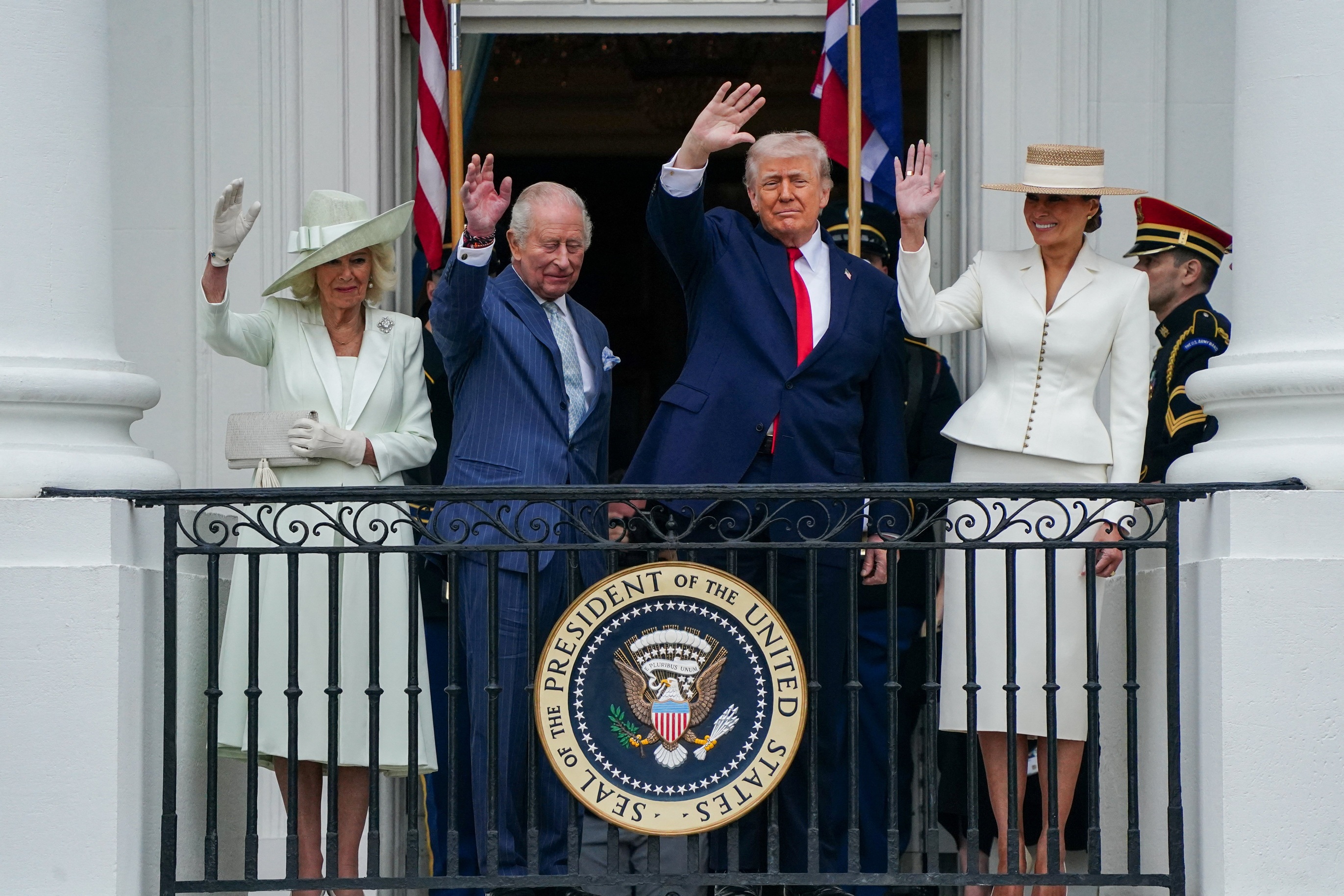وكان ترامب والسيدة الأولى ميلانيا ترامب في استقبال الملك تشارلز والملكة كاميلا في زيارة صباحية إلى المقر الرئاسي، وبعدها من المقرر أن يلقي الملك خطابا نادرا أمام الكونغرس في الساعة الثالثة مساء بتوقيت شرق الولايات المتحدة (1900 بتوقيت غرينتش).