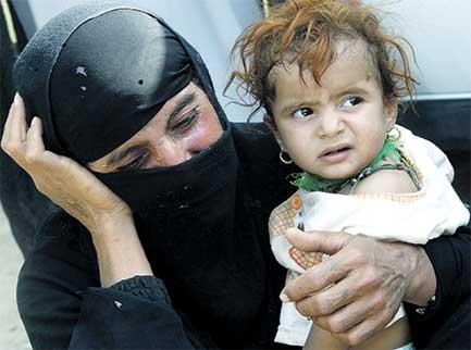 إحدى عائلات الرعاة الـ22 الذين خطفوا في 2007 تنتظر أمام مستشفى كربلاء. أ.ف.ب