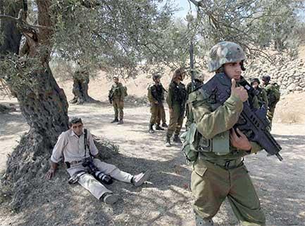 من ناحية أخرى أصيب صحافي وناشطة سلام أجنبية بجروح في الخليل في الضفة الغربية المحتلة فيما تم اعتقال نحو 19آخرين خلال اعتداءات المستوطنين وجنود الاحتلال الإسرائيلي على مزارعين ومتضامنين أجانب كانوا يقطفون ثمار الزيتون في حي تل الرميدة وسط المدينة. وقالت مصادر طبية فلسطينية في المدينة إن الصحافي عبدالحفيظ الهشلمون (45 عاماً) المصور في وكالة الصحافة الأوروبية، أدخل إلى المستشفى وتلقى العلاجات والإسعافات اللازمة جراء إصابته بجروح وخدوش نازفة في الوجه والرأس وكدمات ورضوض في أنحاء الجسم، ناجمة عن تعرضه للضرب المبرح من قبل مستوطنين.