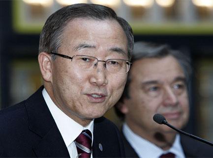 وابلغ بان اجتماعاً لرؤساء وكالة الامم المتحدة المكرسة لهذه الازمة "انها تهدد بتقويض كل انجازاتنا وكل تقدمنا. تقدمنا في استئصال الفقر والمرض . جهودنا لمكافحة التغير المناخي وتشجيع التنمية. لضمان ان يكون لدى الناس ما يكفي للاكل."