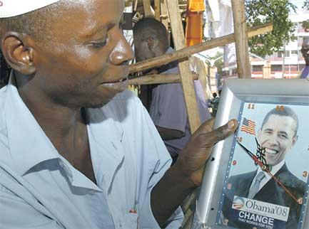 بائع كيني يعرض ساعة خلفيتها صورة لأوباما. رويترز