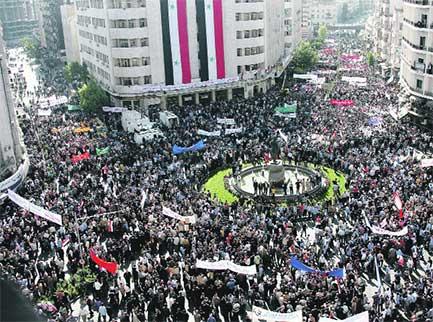 تجمع عشرات الآلاف من المتظاهرين السوريين أمس، في وسط دمشق، احتجاجاً على الغارة الأميركية على منطقة البوكمال، حيث تزامنت التظاهرة مع إغلاق واشنطن سفارتها في العاصمة السورية، وتنبيه رعاياها لاتخاذ أقصى درجات الحيطة والحذر، جاء ذلك في وقت جددت بغداد رفضها للغارة على سورية.