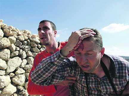 وأوضحت المصادر أن المستوطنين اعتدوا بالضرب على الصحافي إياد حمد مراسل وكالة «أسوشيتدبرس» ما أدى إلى إصابته برضوض في قدمه اليسرى وتمت معالجته ميدانياً.