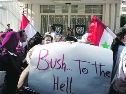 طلاب سوريون يحتفلون بفوز أوباما ويندّدون ببوش. إي.بي.إيه