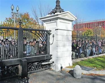 مناصرون لأوباما أحاطوا بسور البيت الأبيض لدى زيارته له أول من أمس. أ.ف.ب