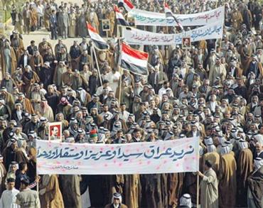 وأضاف «اما الهدف وراء تنظيم المظاهرة فهو ارسال رسائل عدة للذين لا يريدون ان يكون العراق قوياً ومستقلاً».