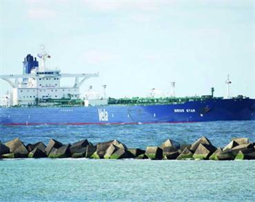 الناقلة السعودية راسية قرب هرارديري أحد المرافئ التي يستخدمها القراصنة الصوماليون. رويترز