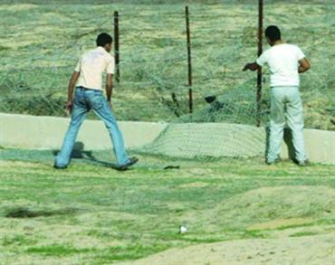 سيناويون يقطعون أسلاكاً شائكة على الحدود. رويترز