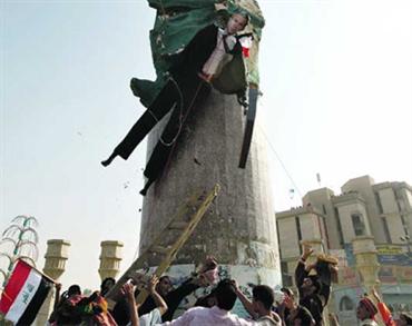 آلاف العراقيين يحطمون «بوش» في مكان إسقاط تمثال صدام