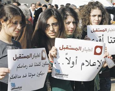 وتقدم المعتصمين وزير الإعلام طارق متري الذي دعا إثر الاعتداء الذي وقع مساء أول من أمس إلى «اتخاذ اجراءات فورية لملاحقة الفاعلين». وشارك في الاعتصام الذي أقيم في ساحة قناة «أخبار المستقبل» نقيب الصحافيين محمد البعلبكي وعدد من نواب وشخصيات قوى 14 آذار التي تمثلها الأكثرية النيابية، إضافة إلى عشرات العاملين في وسائل اعلام مكتوبة ومرئية ومسموعة، وناشطين من جمعيات غير حكومية.