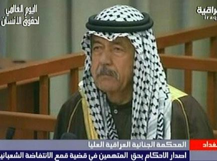 وحكمت المحكمة بالاعدام شنقاً على علي حسن المجيد الملقب ب"علي الكيمياوي" وإبن عم الرئيس العراقي السابق صدام حسين، وعلى عبد الغني عبد الغفور الذي كان مسؤول حزب البعث في جنوب العراق، بتهمة ارتكاب "جريمة القتل العمد كجريمة ضد الانسانية" خلال قمع انتفاضة الشيعة في العراق في 1991. وقال المجيد الذي كان يرتدي الزي العربي لدى النطق بالحكم بهدوء تام "الحمد لله".
