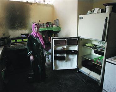 فلسطينية في بيت حانون تعرض ثلاجتها الفارغة بفعل الحصار. غيتي